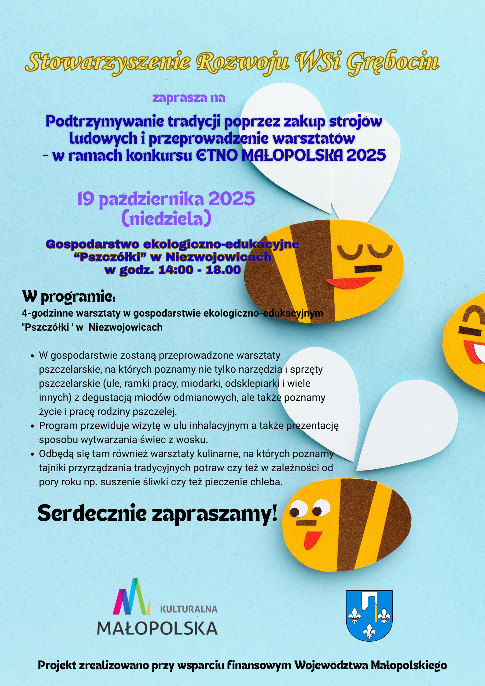 Podtrzymywanie tradycji poprzez zakup strojów ludowych i przeprowadzenie warsztatów – w ramach konkursu ETNO MAŁOPOLSKA 2025 19 października 2025 (niedziela) Gospodarstwo ekologiczno-edukacyjne “Pszczółki” w Niezwojowicach w godz. […]