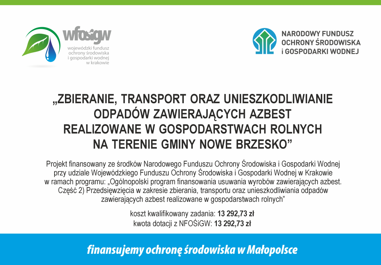 „Zbieranie, transport oraz unieszkodliwianie odpadów zawierających azbest realizowane w gospodarstwach rolnych na terenie Gminy Nowe Brzesko” Projekt finansowany ze środków Narodowego Funduszu Ochrony Środowiska i […]