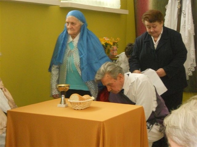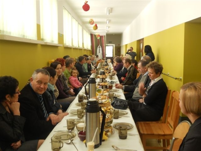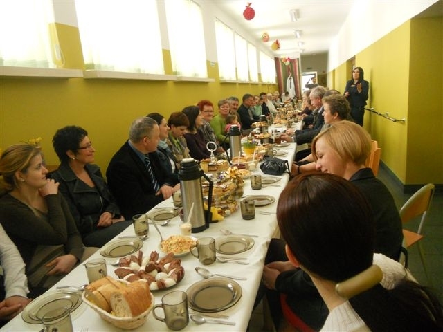 Misterium Męki Pańskiej zrobiło na gościach wielkie wrażenie, co zostało nagrodzone gromkimi brawami, gra aktorska i umiejętność wczucia się w role – mówił pan Arkadiusz Fularski, są godne podziwu dla tych ludzi. Pani kierownik ŚDS podziękowała personelowi za przygotowanie teatrzyku, złożyła wszystkim życzenia z okazji zbliżających się świąt Wielkiej Nocy, podziękowała gościom za tak liczne przybycie i zachęciła do częstowania się przygotowanymi przez uczestników i personel ŚDS wspaniałościami. Na stole jak obyczaj każe był żurek wielkanocny, mazurki, jajka pod różną postacią, chrzan i oczywiście wielkanocne ozdoby, które przystrajały stoły.