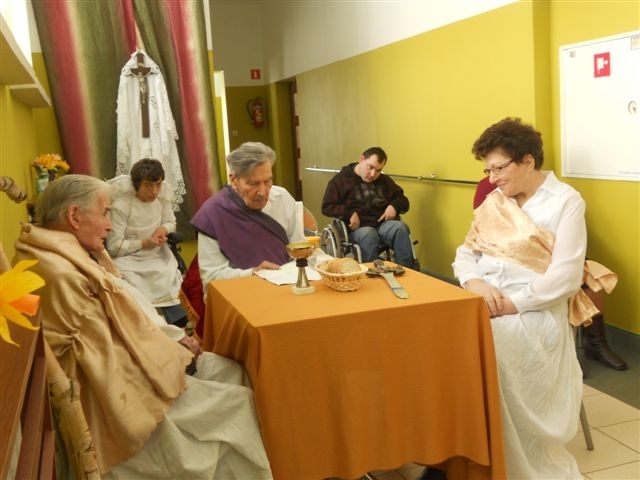 Jak każdego roku tak i teraz 27 marca ŚDS w Gruszowie przygotował Misterium Męki Pańskiej do którego obejrzenia zostały zaproszone zaprzyjaźnione z ośrodkiem instytucje i władze samorządowe. ŚDS gościło Burmistrza Gminy i Miasta Nowe Brzesko Grzegorza Czajka, Sekretarza Gminy i Miasta Arkadiusza Fularskiego, przedstawicieli MGOPS, Dyrektora Hotelu św. Norberta panią Izabelę Pacławską oraz przedstawicieli rodzin uczestników ŚDS.