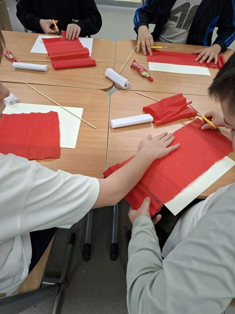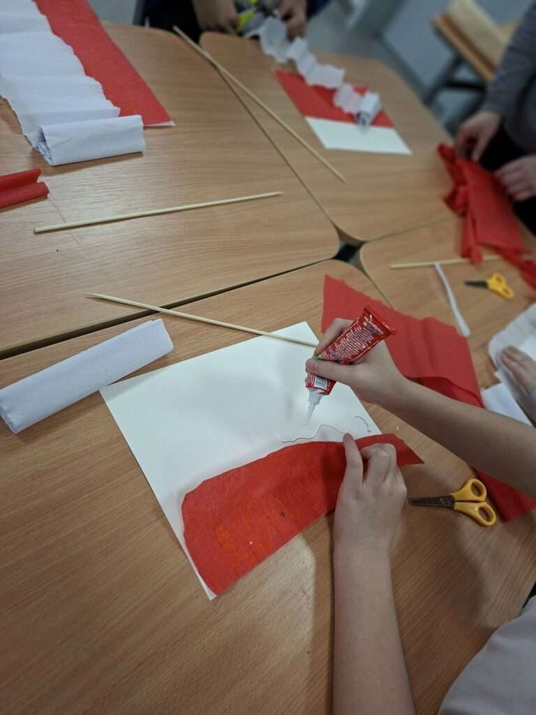 Podczas warsztatów wspólnie wykonaliśmy patriotyczne kotyliony, flagi oraz malowaliśmy obrazy. Na zakończenie uczestnicy zaprezentowali swoje prace. W ramach projektu przygotowaliśmy poczęstunek dla dzieci i osób dorosłych oraz zakupiliśmy dekoracje patriotyczne.
