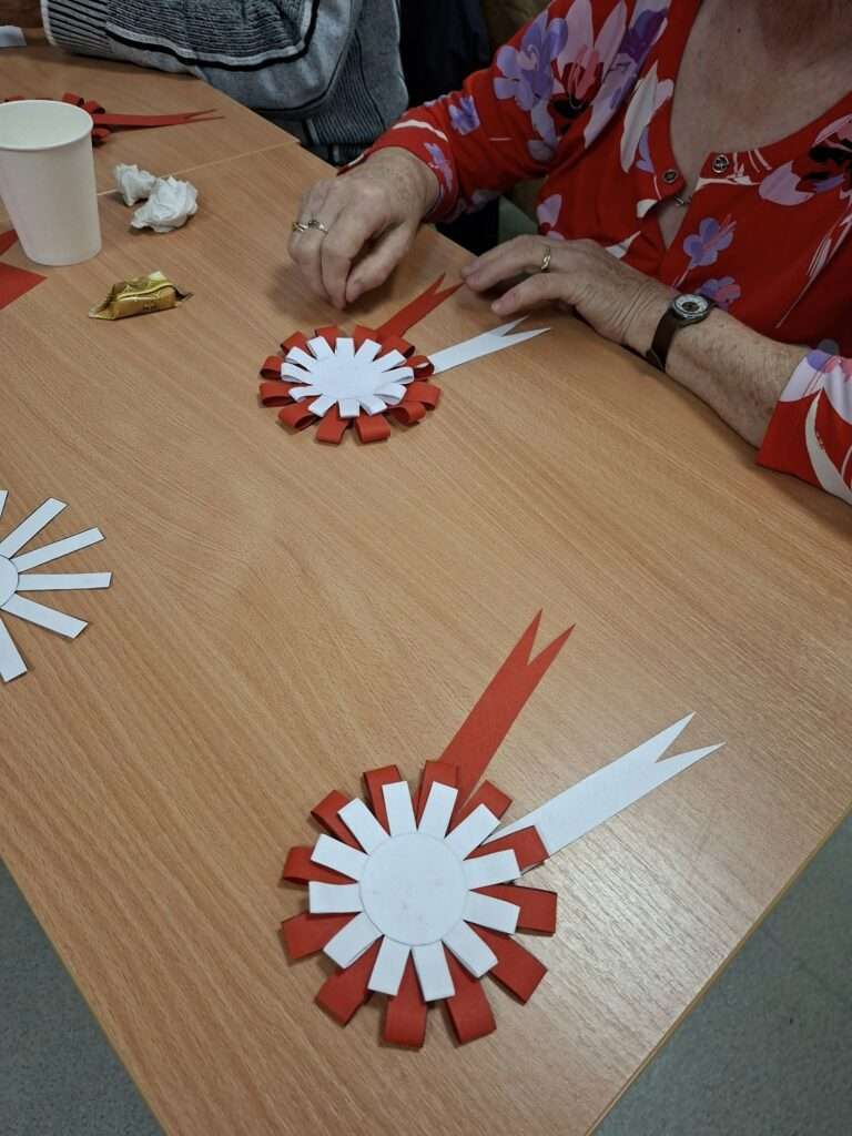 Przeprowadziliśmy warsztaty rękodzielnicze o tematyce historyczno-patriotycznej dla dzieci, młodzieży, dorosłych i seniorów, w tym osób w spektrum neuroróżnorodności, oraz koncerty „Sensoryczny pokaz dźwięków dla Niepodległej”, które poprowadziła Pani Annie Cichy-Fatyga Podczas jednego z wydarzeń jedną z pieśni patriotycznych wykonała również uczestniczka Środowiskowego Domu Samopomocy w Gruszowie Pani Edyta Łakomska.