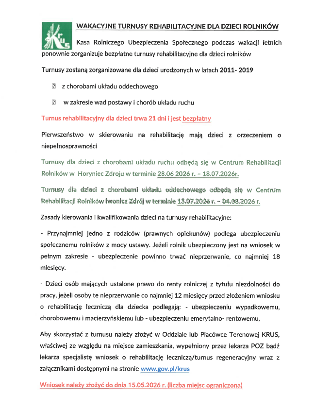 WAKACYJNE TURNUSY REHABILITACYJNE